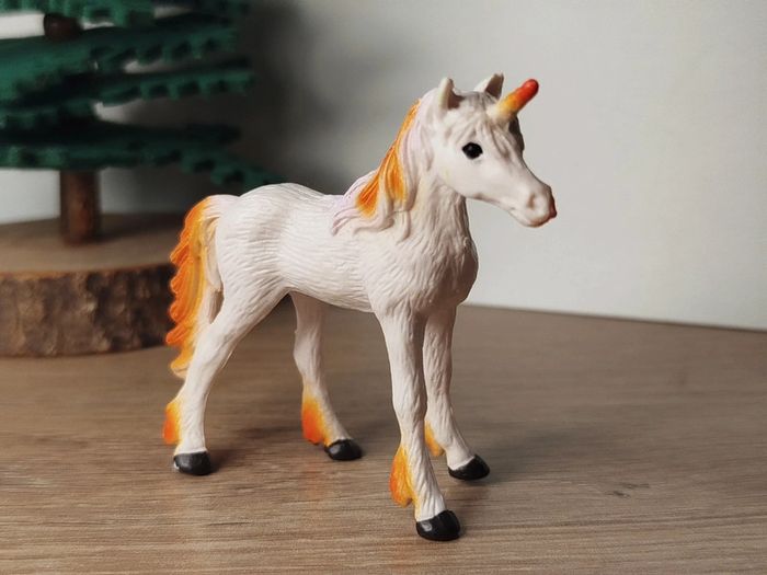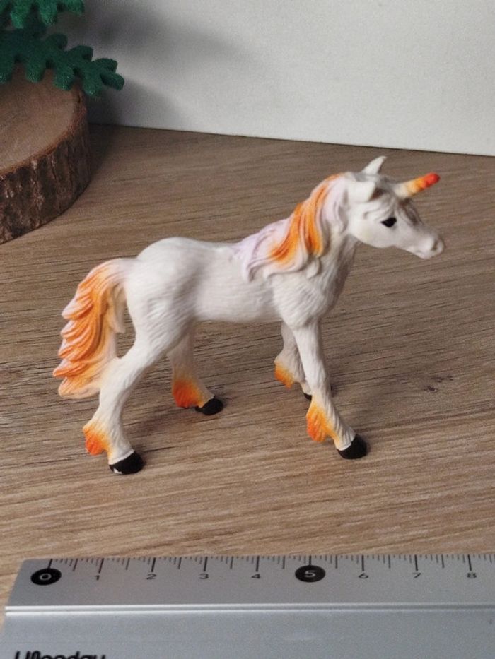 Figurine jeune licorne blanche et orange Animal imaginaire - photo numéro 1