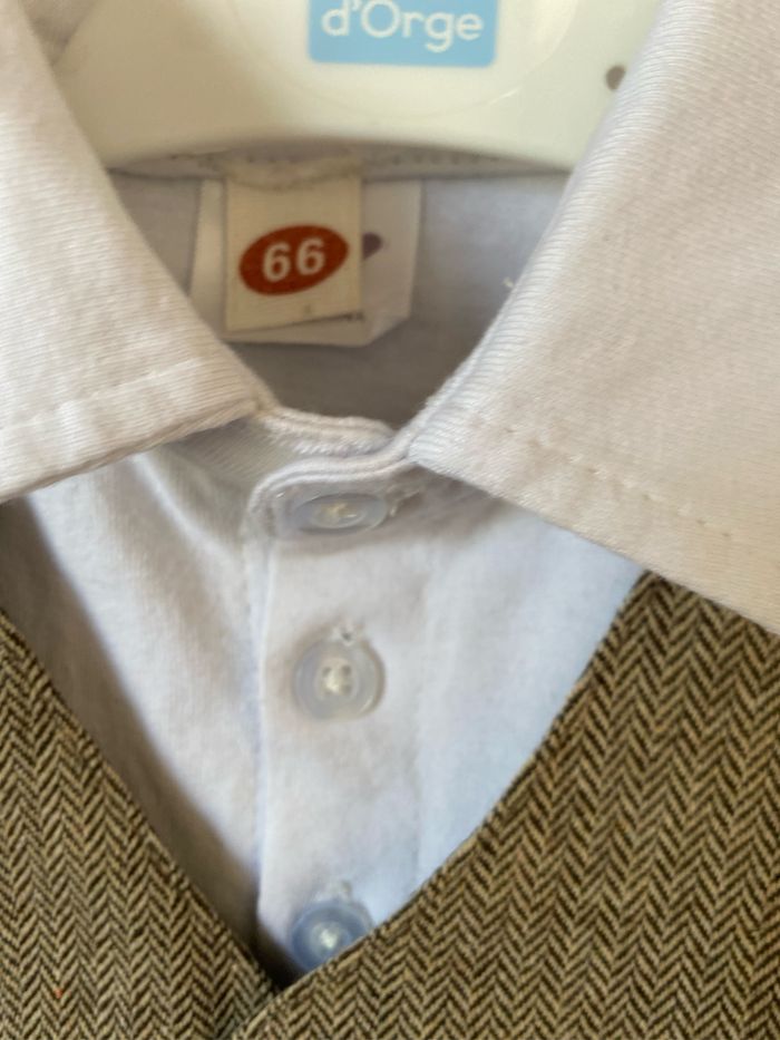 Costume bébé body Combi short polo blanc et gilet sans manche boléro Taille 3/6 mois 66 cm