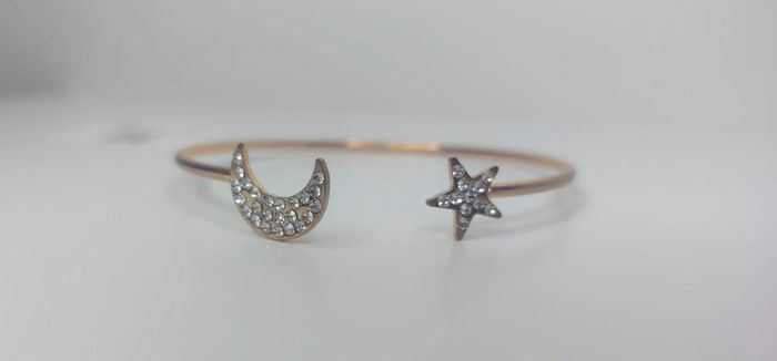 Jonc en Acier Inoxydable "Céleste" - Lune et Étoile Scintillantes Description : Illuminez votre poignet avec le jonc "Céleste", une pièce délicate et pleine de charme. Ce bracelet ouvert en acier inoxydable doré est orné d'une lune et d'une étoile scintillantes, serties de cristaux clairs. Son design minimaliste et élégant en fait l'accessoire parfait pour ajouter une touche de magie à vos tenues, de jour comme de nuit. Caractéristiques : * Matériau : Acier inoxydable de haute qualité, hypoallergénique et résistant à l'eau. * Couleur : Doré. * Ornements : Lune et étoile serties de cristaux clairs. * Type de bracelet : Jonc ouvert, ajustable pour s'adapter à la plupart des poignets. * Style : Minimaliste, élégant, céleste. * Fermoir : Ouvert, sans fermoir. * Dimensions : * Diamètre intérieur : Ajustable. * Taille des ornements : Lune et étoile de dimensions proportionnelles et délicates. * Poids : Léger et confortable à porter au quotidien. Avantages : * Résistant et durable : L'acier inoxydable ne ternit pas, ne rouille pas et ne se déforme pas. * Hypoallergénique : Convient aux peaux sensibles. * Facile à porter : Le design ouvert s'adapte à différentes tailles de poignet. * Polyvalent : Se marie avec tous les styles, du décontracté au sophistiqué. Livraison rapide Disponible sur notre site officiel esthetic beauty's ou sur vinted