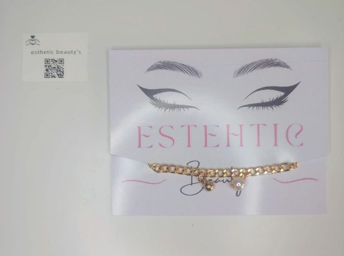 "esthetic beauty's" : 1.Bracelet "Douceur" 2. Matériaux : * Chaîne : Acier inoxydable de haute qualité, finition dorée * Perles : perles synthétiques * Breloque : Petite breloque en acier inoxydable ronde * Fermoir : Fermoir mousqueton en acier inoxydable, facile à utiliser et sécurisé * Anneaux de Jonction : Acier inoxydable 3. Dimensions : * Longueur Totale : 18 cm (ajustable avec une chaînette d'extension de 3 cm) * Diamètre des Perles : 6 mm * Taille de la Breloque : 6 cm 4. Caractéristiques : * Hypoallergénique : Convient aux peaux sensibles * Résistant à l'eau : Ne ternit pas au contact de l'eau * Durable : Ne se déforme pas et ne se raye pas facilement * Léger et Confortable : Agréable à porter au quotidien * Style : Délicat, féminin, minimaliste (ou autre style selon le modèle) 5. Design et Esthétique : * Inspiration : Pureté, élégance, romantisme * Couleurs : Doré, blanc nacré * Détails : Chaîne fine, perles délicates, breloque discrète * Nettoyer régulièrement avec un chiffon doux et sec * Éviter le contact avec les produits chimiques Livraison rapide Disponible sur notre site internet esthetic beauty's ou sur vinted