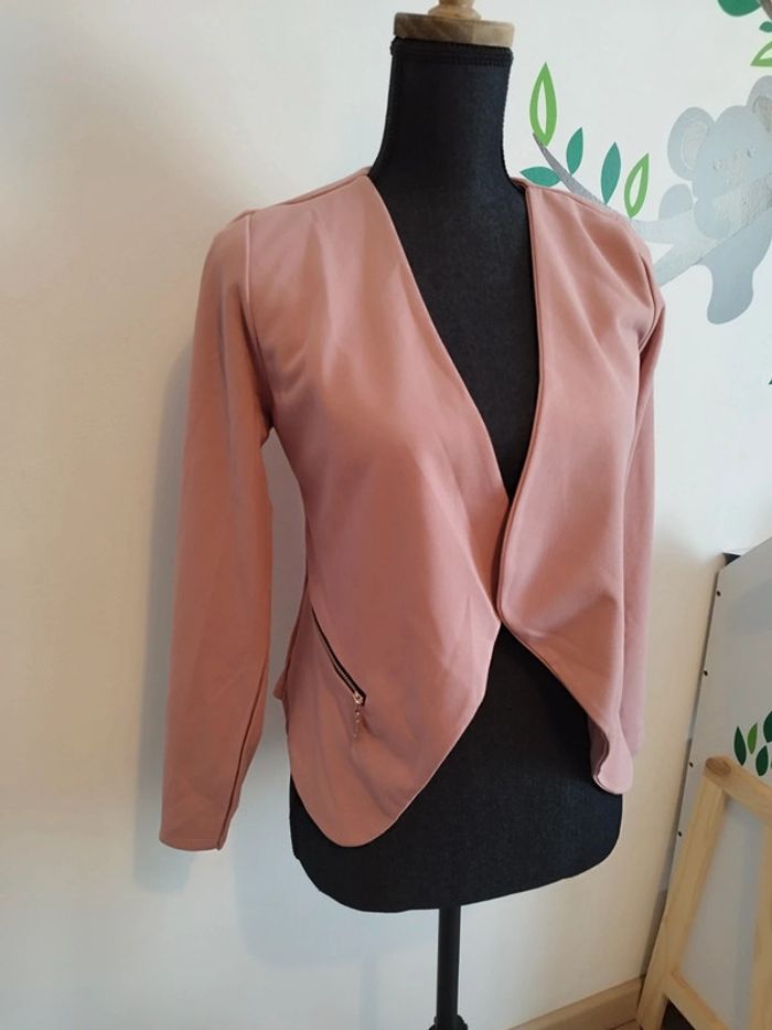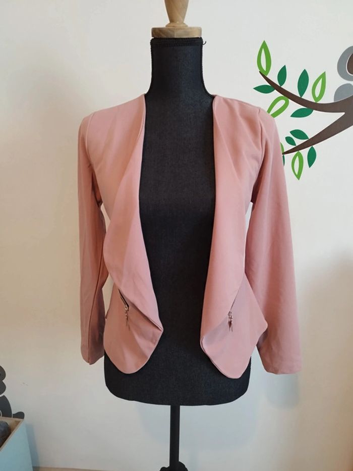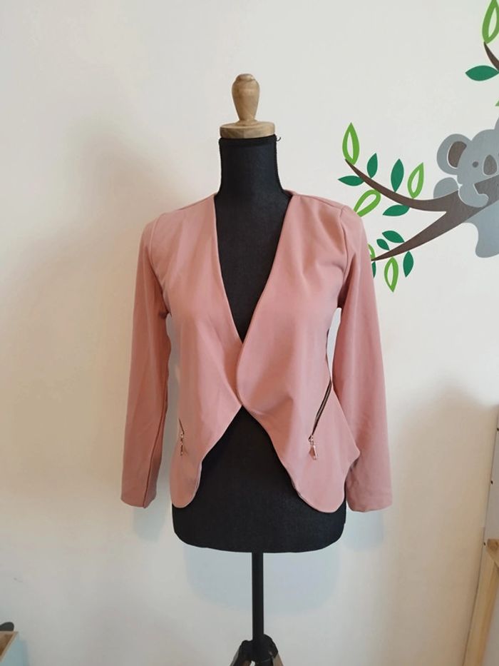 Jolie Veste blazer femme neuf Ne se ferme pas Fausse poches Taille unique jusqu'à un petit 42 si vous n'êtes pas large des epaules #blazerfemme #vestefemme #tailleur #rose **Le mannequin fait tout entier 1m60 taille 38** le buste (sans le cou ) fait 53cm**