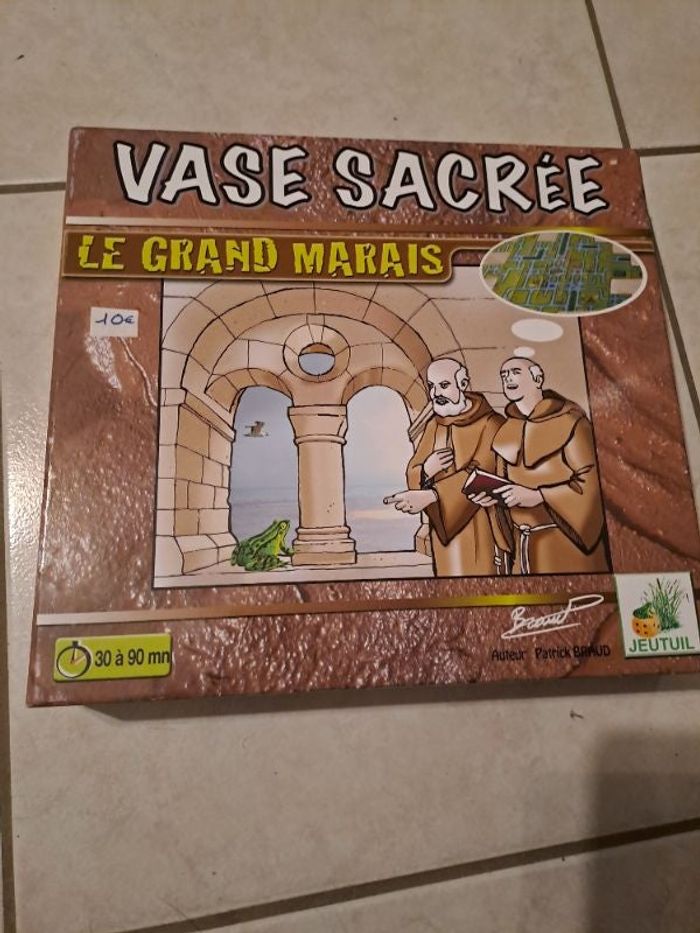 Jeu Vase sacrée sur le thème du marais poitevin ou le but est de construire un lieu de vie en assechant le marais. Le but est de placer ses cartes Jeu complet avec plateau, cartes, notices, pions qui a très peu servi