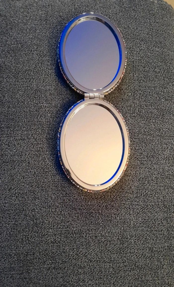 Miroir de poche neuf, décoration zellige marocain avec strass avec 2 miroirs: un normal et un grossissant Dimensions en photos