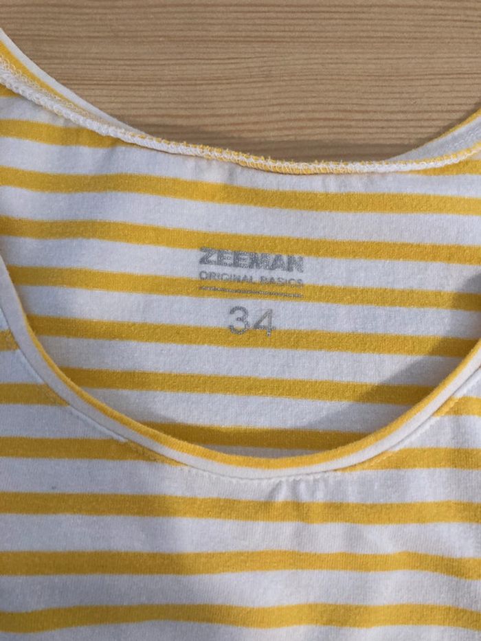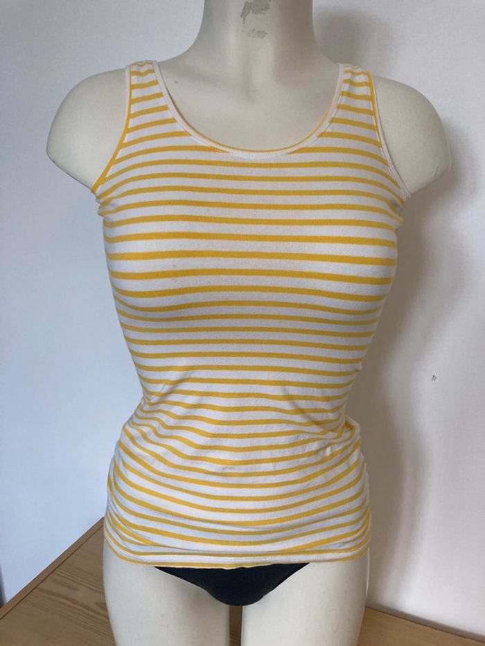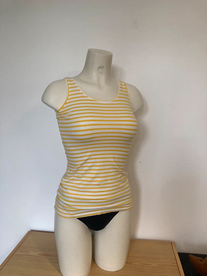 Débardeur pour femme Etiquette indique XS (34 ) mais convient pour du S (36) . Mesures en photos. Couleur jaune et blanc ( style Marinière ) peu porté. Marque: Zeeman 🛍 retrouvez les vêtements femme taille 34 sur #llilou07femme34 et 36 sur #llilou07femme36 , autres tailles dans mon dressing. femme/ fille / garçon . 🏷 Réduction sur les lots