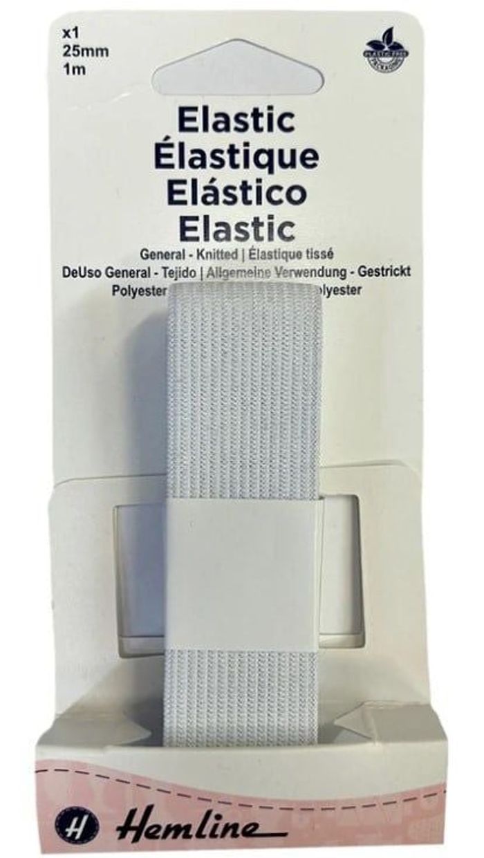 Élastique tissé souple élastique 25 mm blanc Élastique de couleur blanc, composé de polyester, épaisseur de 25 mm et de longueur 1 mètres. Bande élastique, idéal pour les jupes et robes élastiques, les bretelles et autres créations. Dimensions : 25mm x 1m
