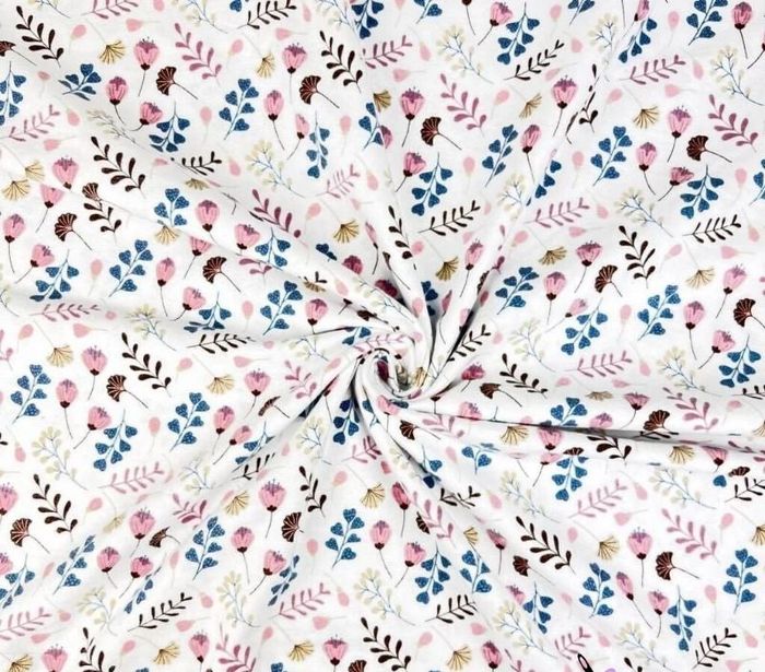 Flanelle fleurs rose sur fond blanc