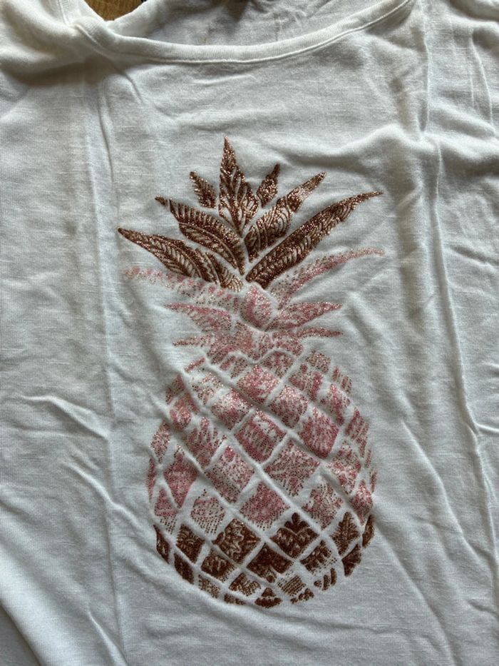 Vend ce débardeur blanc ultra doux et léger Avec motif ananas en paillette rose et gold