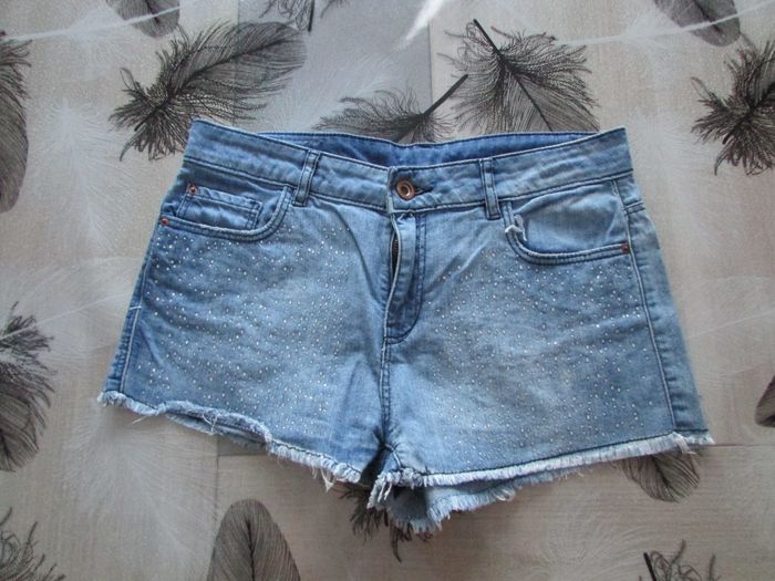 Short en jean pour fille de chez Page one young en excellent état avec des strass collés. Taille: 164cm soit 13/14 ans - d'autres vêtements ici #ysatis13fille14ans N'hésitez pas à faire un lot pour profiter des remises activées #short #jean #bleu #page #one #young #164cm #13ans #14ans