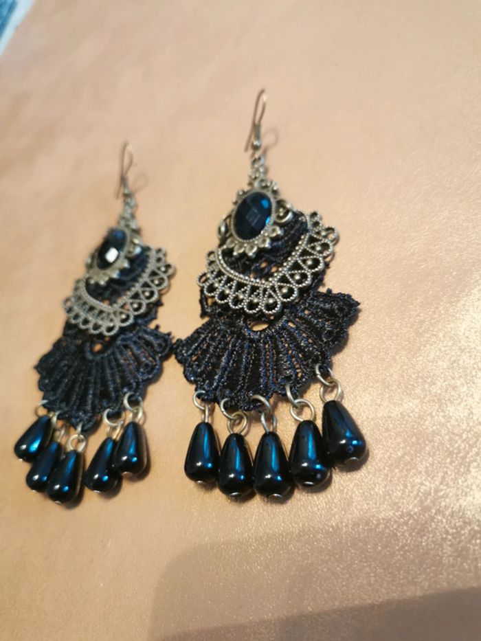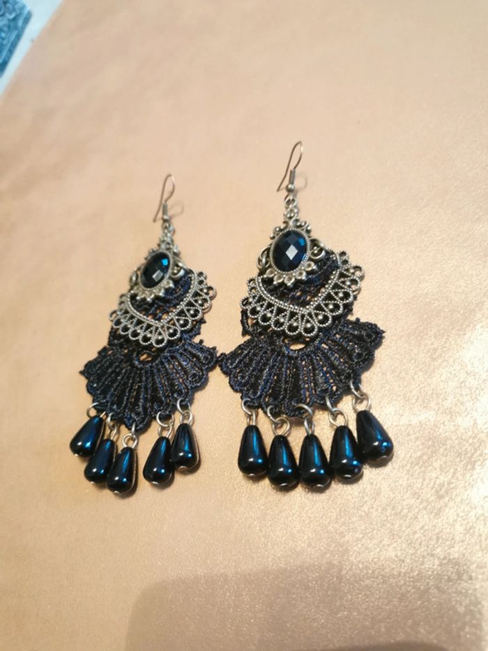 Boucles d'oreilles style gothique dentelle noire - photo numéro 1