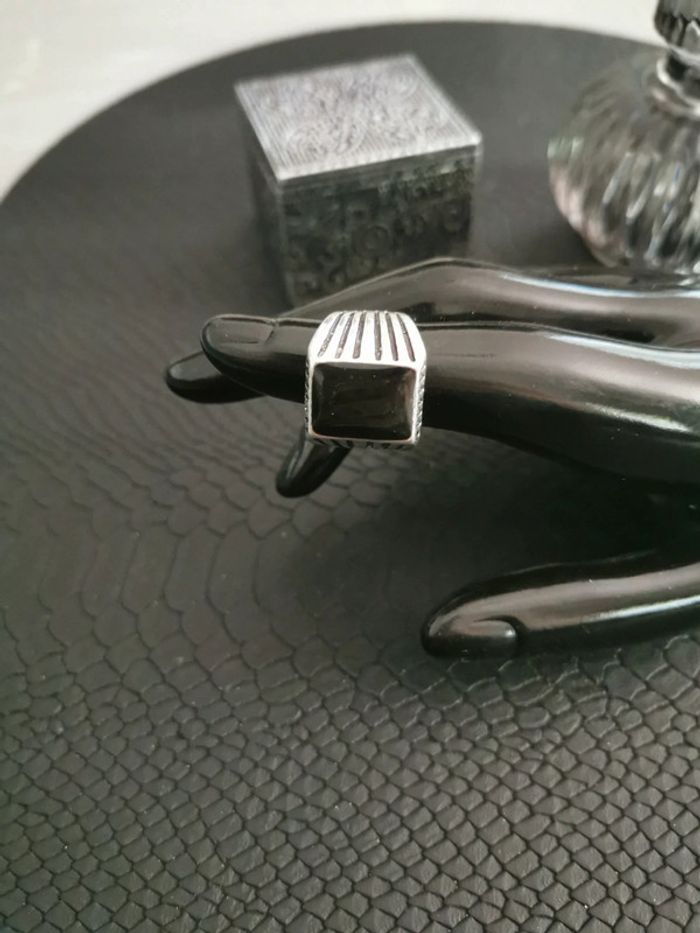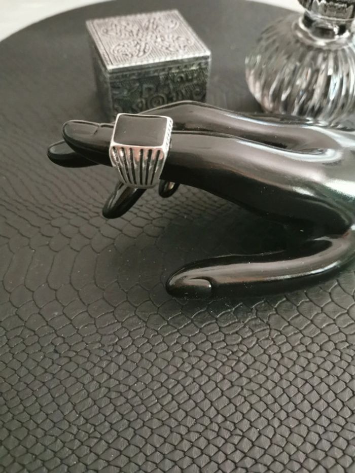 Bague homme acier et pierre noire T9 - photo numéro 1