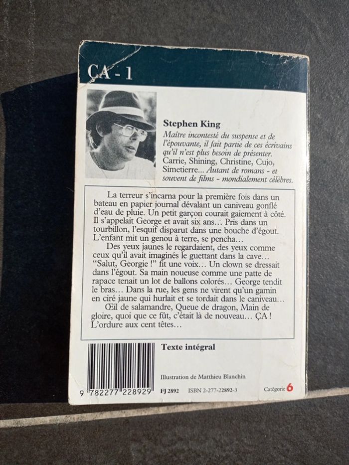 Livre de poche Stephen King ça 1 Bon état, voir photo. Aucune écriture à l'intérieur. #livre_emeu2211 🔂 Tendances de mon dressing et villes desservies : #débardeur #broderies #boheme #retro #blouse #glamour #hippie #paris #tourdecou #militaire #bustier #escarpins #bracelet #esprit #montre #strass #noeud #boléro #spartiates #sexy #vert #rose #mauve #violet #jupon #corail #blouson #turquoise #prune #blanc #noir #rouge #moutarde #corail #bordeaux #rouille #bleu #vif #doré #classique #soiree #bottines #ceinture #tulle #gilet #jean #rayures #voile #ajouré #manteau #fifties #lolita #romantique #sandales #nupied #derbies #chapeau #snood #cheche #couture #beret #chemise #pantalon #carreaux #broderies #marinière #coeur #jouet #enfant #maquillageneuf #homme #ongles #petitprix #livre #legging #accessoires #bébé #chaussures #disney #fille #garçon #imperméable #kway #etiquette #sac #top #xl #yeux #lèvres #lot #tong #marque #divers #style #original #vintage #rock #américain #casual #class #neuf #état #luxe #princesse #lot #romantique #motifs #imprimés #brillant #paillettes #maille #hiver #été #printemps #automne #dentelle #crochet #cuir #fendu #similicuir #chaîne #métal #ruban #bande #pierre #ethnique #afro #traditionnel #caoutchouc #tricot #cœur #poudré #pompon #coupe #patineuse #plissé #taille #basse #haute #crayon #cintré #large #dos #droit #genoux #élastique #confortable #transparent #décolleté #chino #talon #basket #ballerines #boots #bottes #villeneuve #ascq #baisieux #cysoing #tournai #orcq #tressin #anstaing #willems #amand #thun #bruille #mortagne #bastions #camphin #pevele #chereng #hem #roubaix #toufflers #bourghelles #wannehain #froyennes #lamain #hertain #blandain #marquain