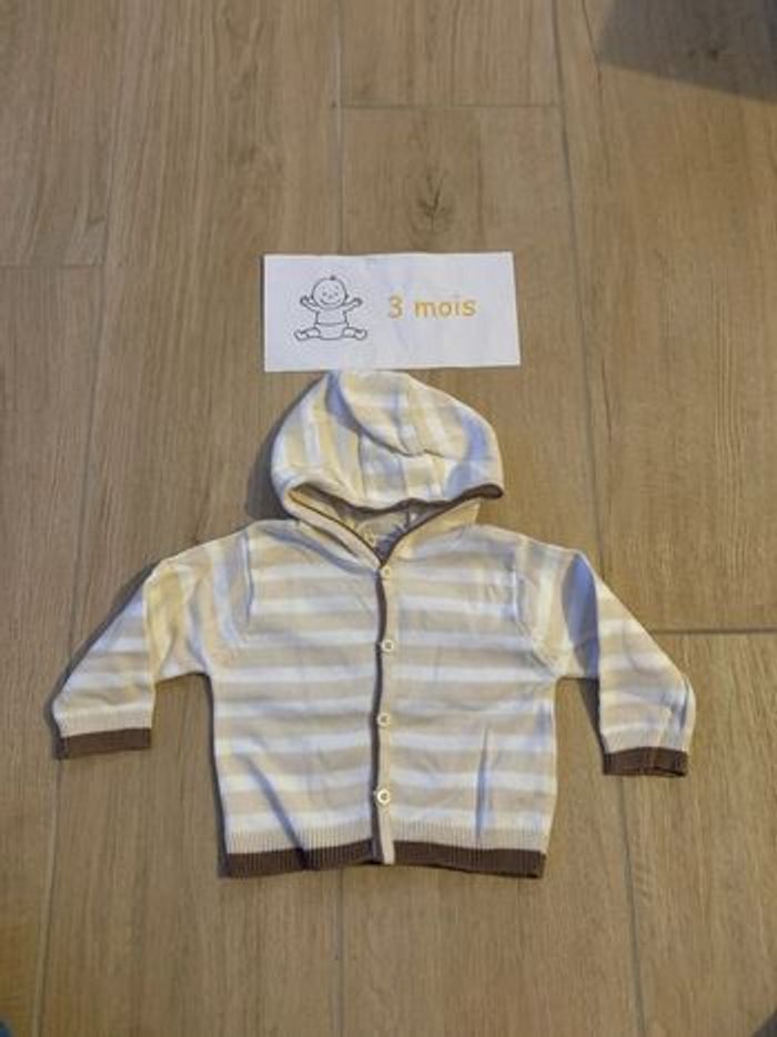Gilet avec boutons rayé beige et blanc 3 mois Très bon état