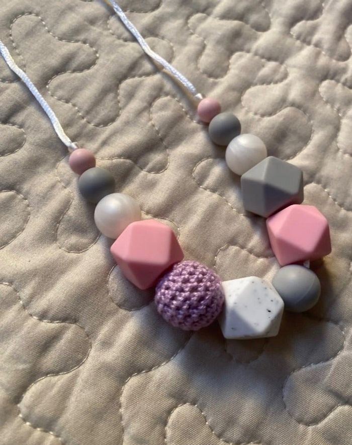 Collier d’allaitement , portage ou de biberonnage réalisé par mes soins avec des perles 100% silicone alimentaire sans BPA , sans plomb ou autre substance nocive selon la norme. Perle adapté au x normes bébé La couleur peut-être personnalisée selon votre choix. N’hésitez pas à me contacter. Ce collier permettra aux jeunes mamans de passer un moment plus serein avec bébé. Cela permis de fixer l’attention de bébé , d’éviter d’agripper bijoux , vêtements , cheveux. C’est un objet d’éveil sensoriel.