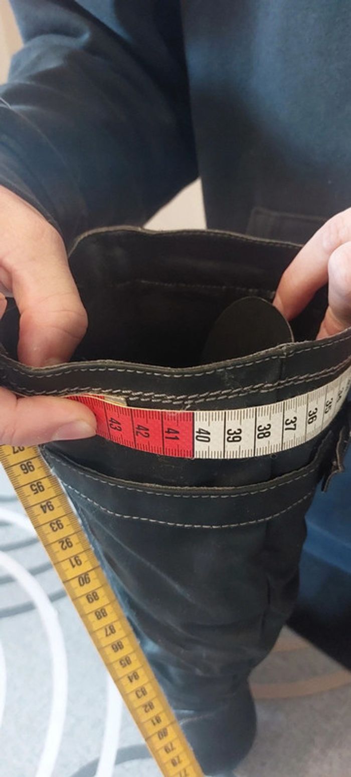 Jamais porté a petit talon de 4.5 cm troisième photo Mesure du tour du molet 42 cm photo deuxieme photo regarde bien A fermeture les bottes