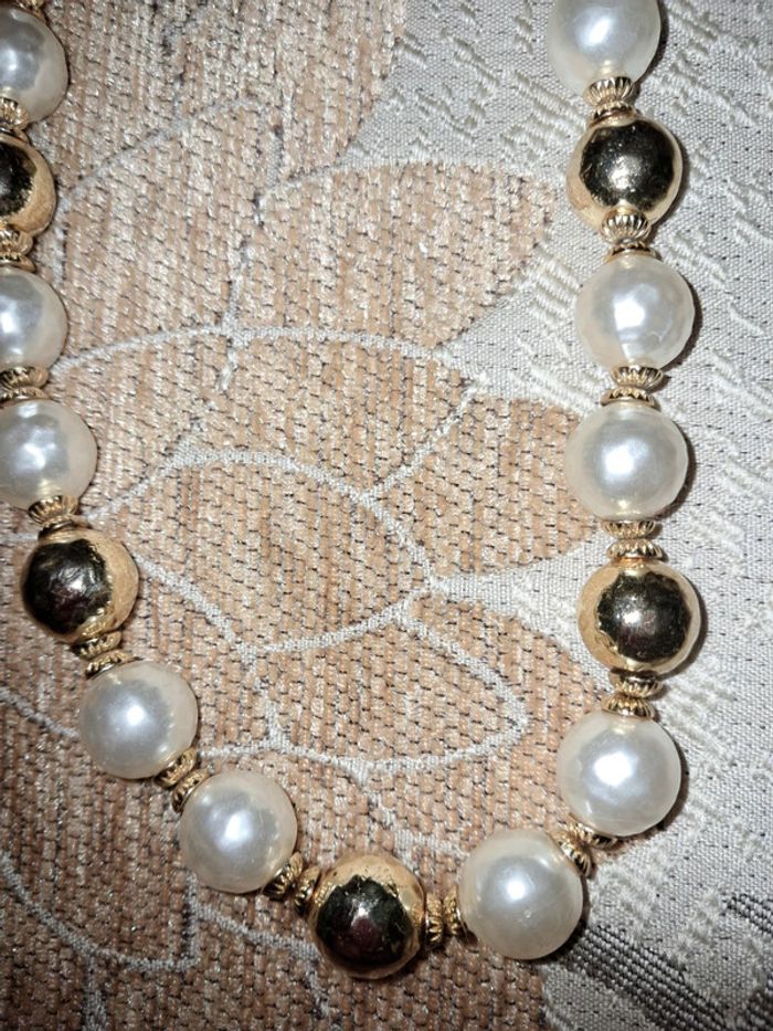 Joli collier fantaisie Doré et nacré Neuf 56 cm