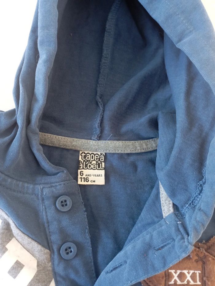 Sweat à capuche bleu manches longues 6 ans tape à l'oeil 3€ - photo numéro 3