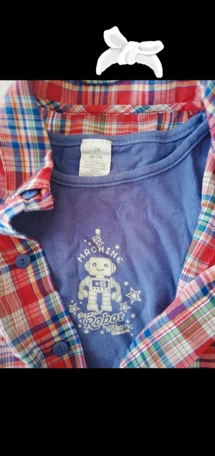Chemise 24 mois a carreaux rouge avec TS bleu intégré - photo numéro 3