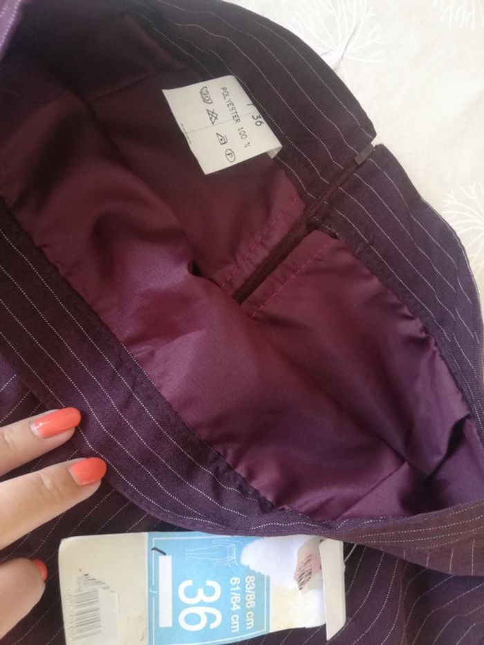 Jupe droite prune rayé blanc taille 36 neuve - photo numéro 4