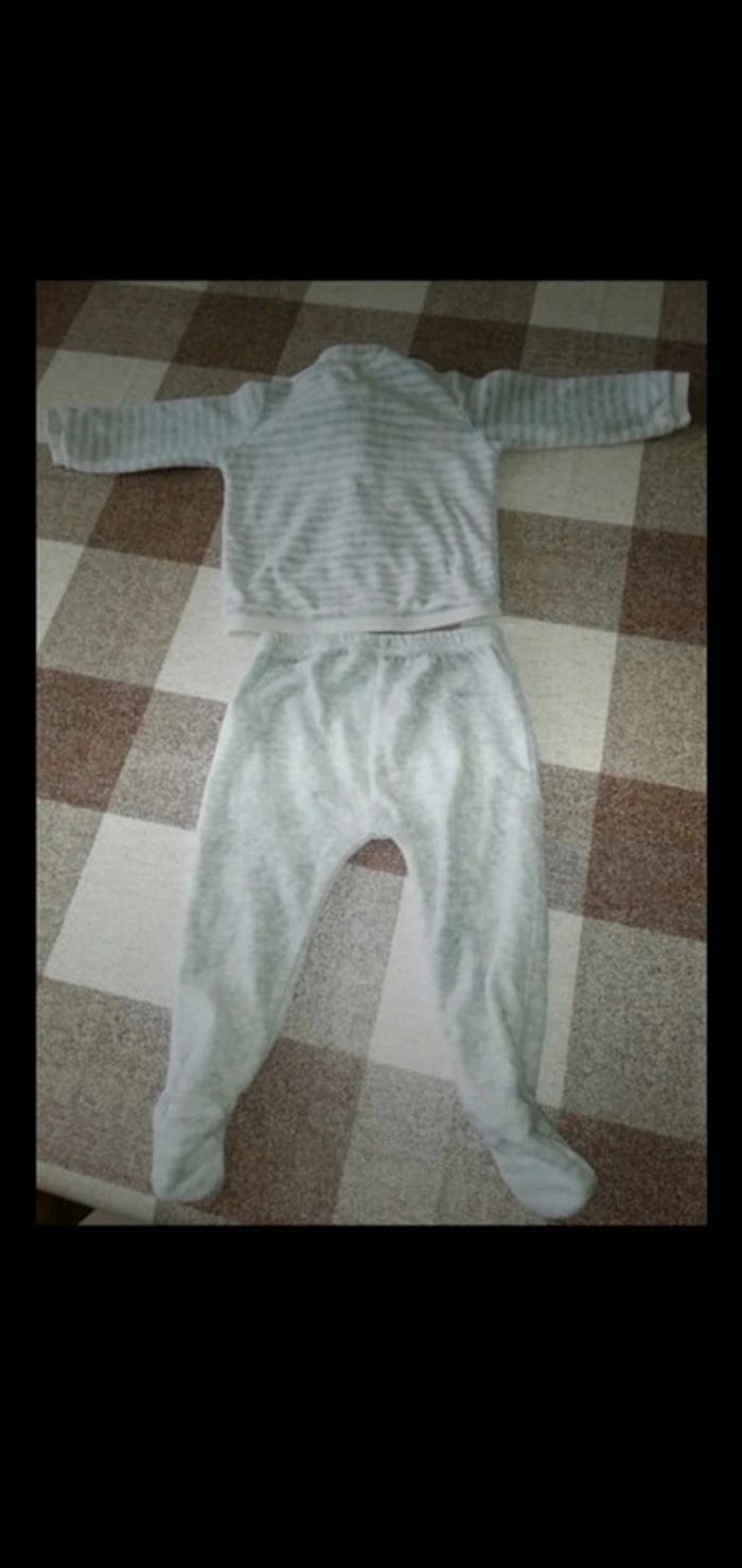 Ensemble 6 mois gilet zip et pantalon à pied rayé blanc/gris grain de blé - photo numéro 3