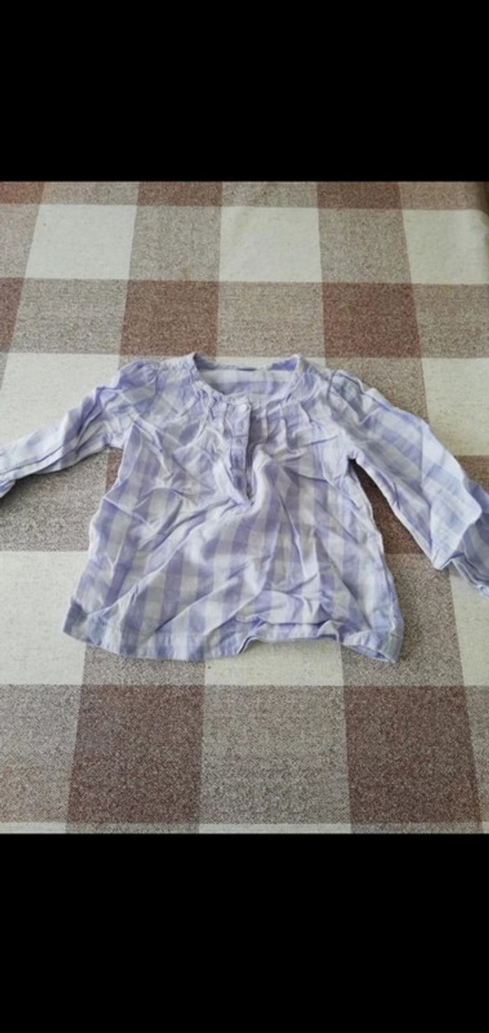 Chemisier 23 mois manches longues a carreaux blanc/Lila Tex - photo numéro 2