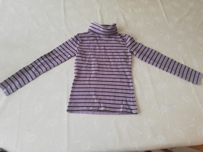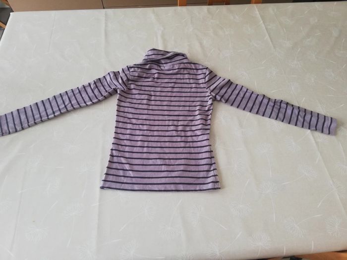 Sous pull col roulé rayé parme/marron 8 ans - photo numéro 3