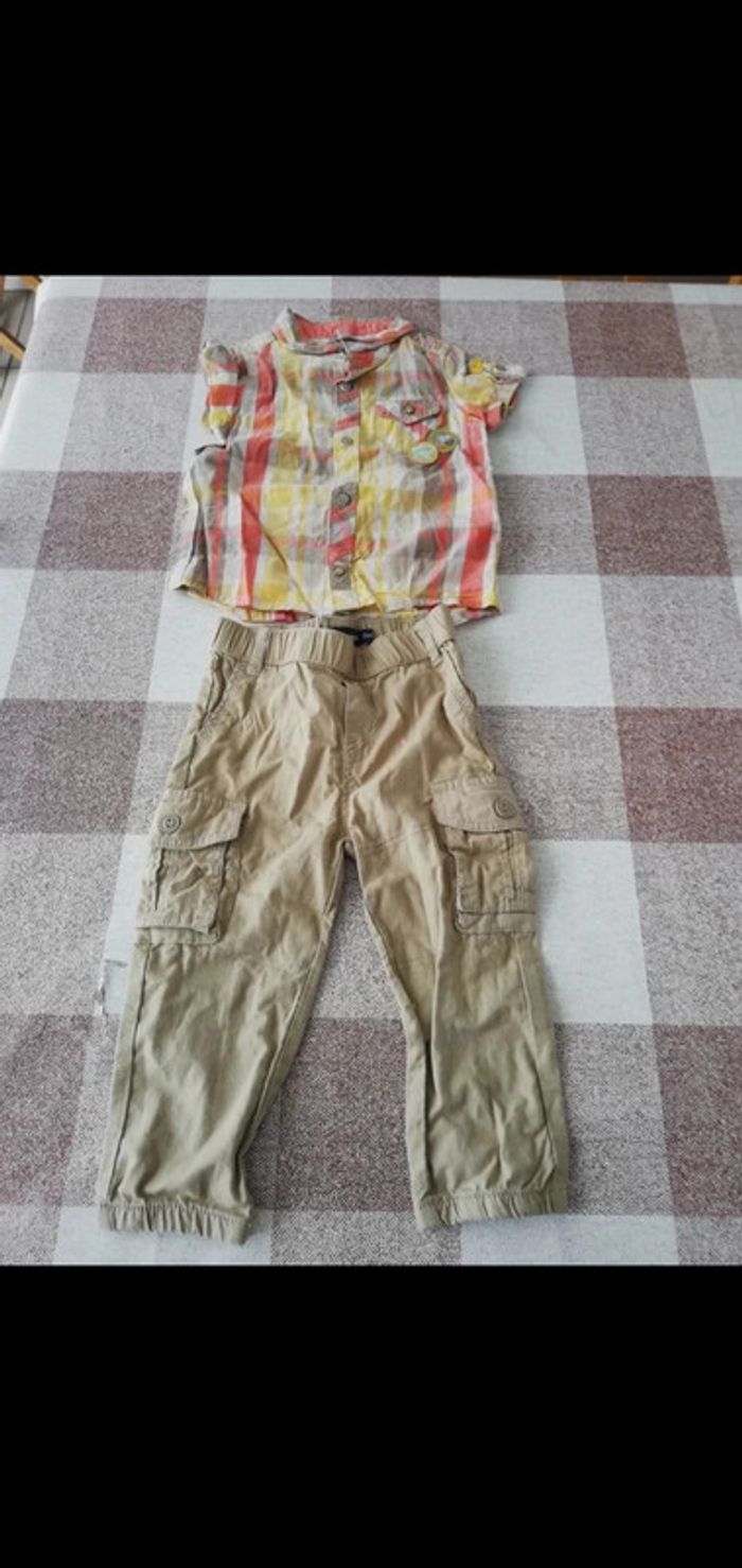Ensemble pantalon chemise courte kaki in extenso 80cm
