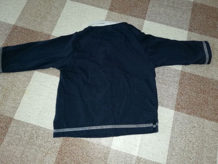 Polo 6 mois manches longues blanc/ marine rugby - photo numéro 2
