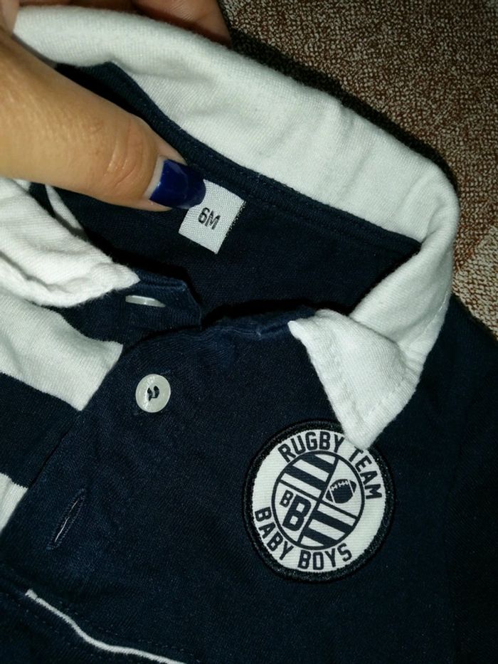 Polo 6 mois manches longues blanc/ marine rugby - photo numéro 1