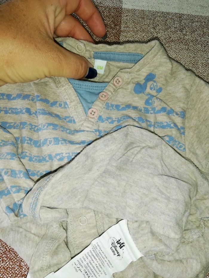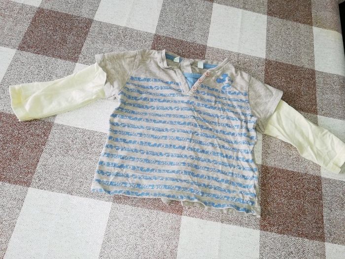 Tee shirt 12 mois manches longues rayé bleu/beige  Disney Mickey - photo numéro 1