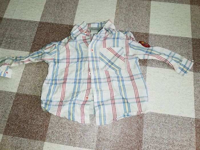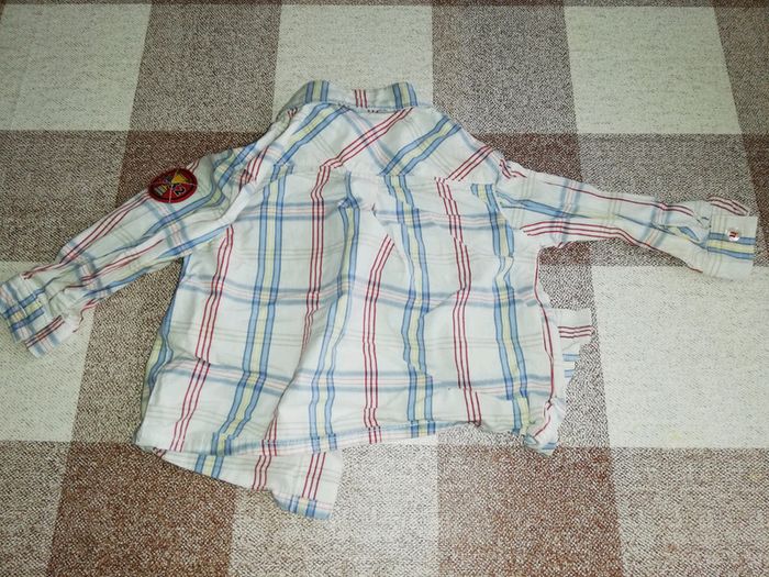 Chemise 6 mois manches longues à carreaux blanc/bleu Baby club C&A - photo numéro 1
