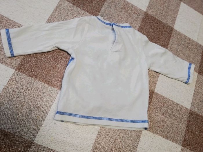 Tee  shirt 6 mois épais écru manches longues voitures