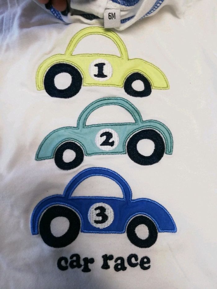 Tee  shirt 6 mois épais écru manches longues voitures - photo numéro 3