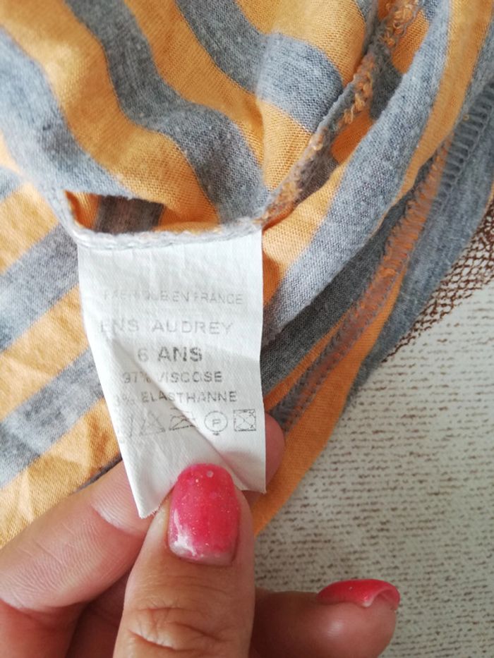 Tee shirt manches courtes rayé gris/orange 6 ans - photo numéro 2