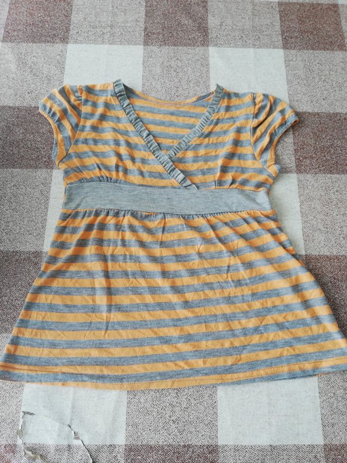 Tee shirt manches courtes rayé gris/orange 6 ans - photo numéro 1
