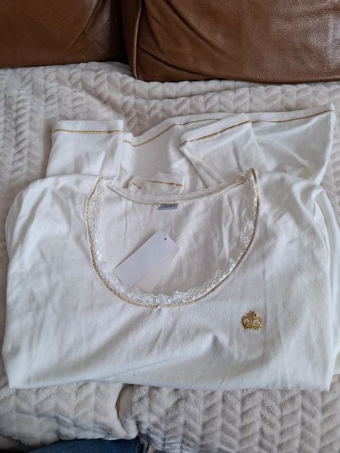 Tee-shirt femme manche longue Neuf avec étiquette. Ms mode Taille xl Blanc et doré