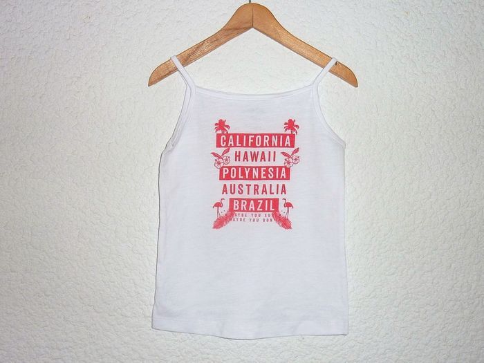 Débardeur de marque ORCHESTRA en état excellent, blanc, animation rouge devant.