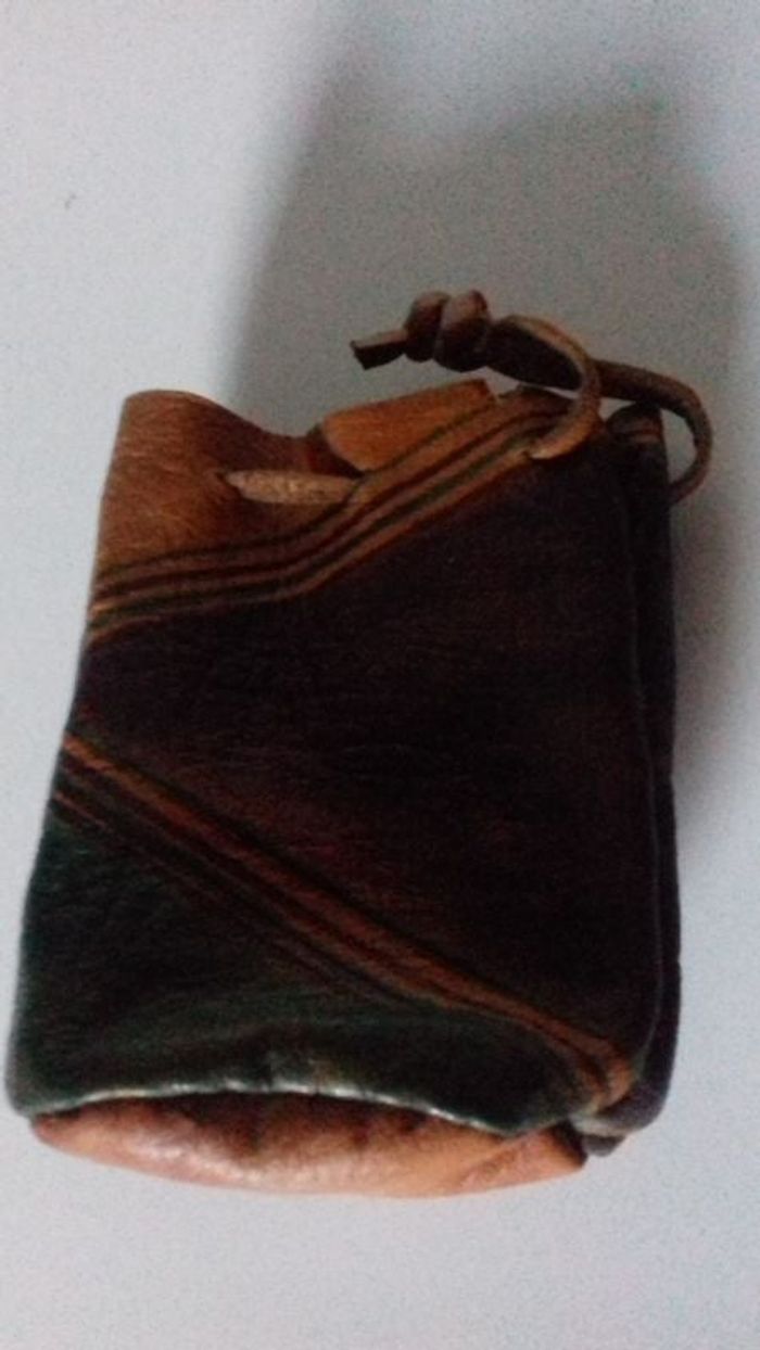 Dimension : 10 cm coloris : ocre serti d'un patchwork de bordeau/bleu/vert, fermeture : par deux cordons : idéal transporter de la petite monnaie ou vos clés de maison.