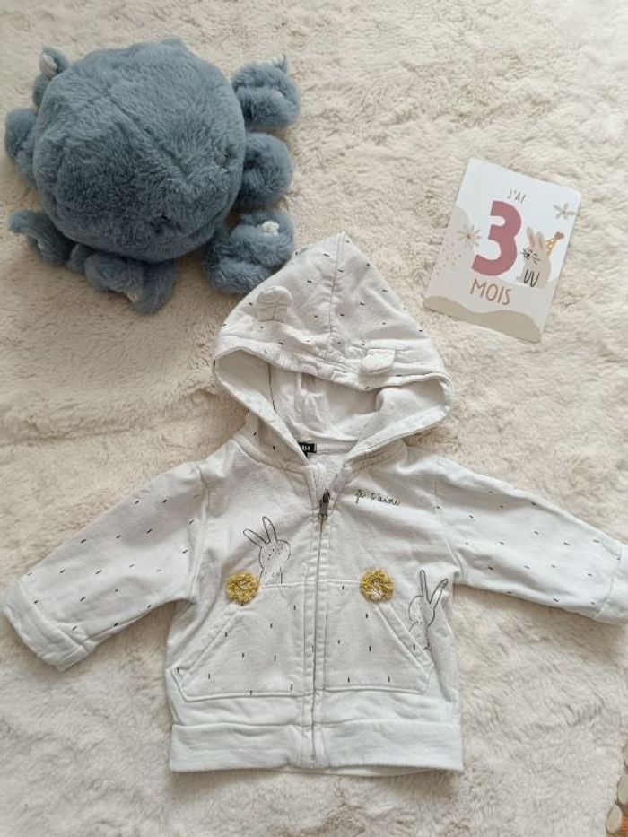 Je vends un Sweat a capuche 3 mois kiabi Très bon état