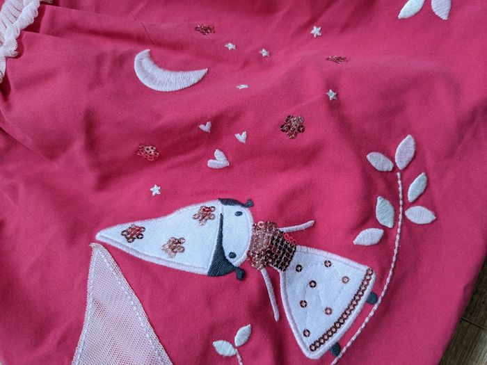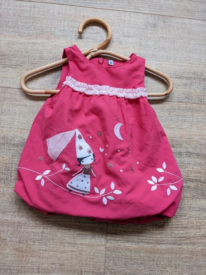 Jolie robe avec de beaux détails , elle est en parfait état , jamais portée . La marque est inconnue . Taille 3 mois