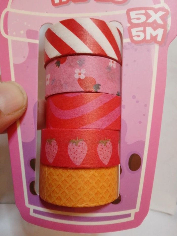 Neuf ! - Ensemble de rubans adhésifs washi sur le thème des fraises. - 5 x 5 mètres. 👉 Pour info, d'autres modèles disponibles dans mon dressing. * Rappel : -5% pour 3 articles, -10% pour 5 articles. #sambaetmayline21LoisirsCreatifs