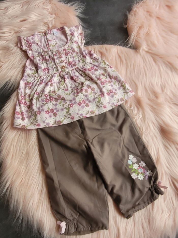 Ensemble 6 mois 1 bas kaki et un haut fleuri assorti