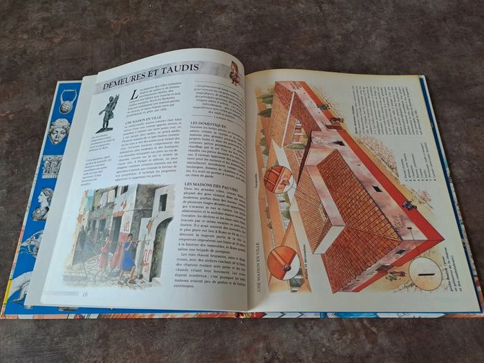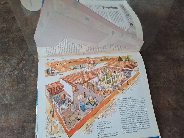Livre explicatif sur les romains, avec feuillet a double vue sur certaines pages