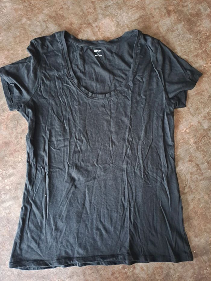 T-shirt noir, jamais porté, col rond un peu décolleté