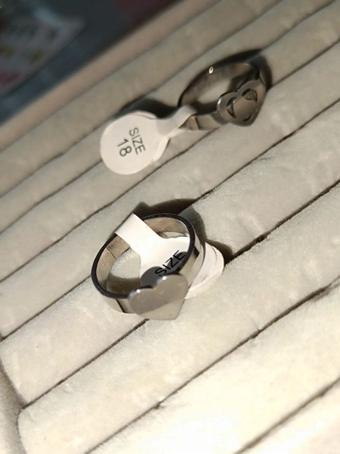 Lot de 2 bagues Coeur en Acier Neuf🖤Taille 18 - photo numéro 2