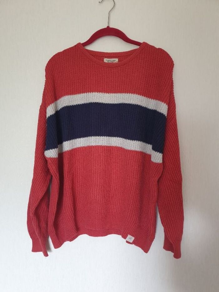Pull en maille rouge avec rayures bleu et blanc Pull and Bear, taille M Acrylique et coton Porté quelques fois Aisselle : 70 cm Longueur : 58 cm #pauliiiinefemme38