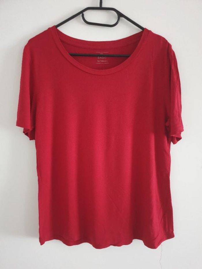 Tee shirt uni rouge sang, tissu fluide Camaieu Étiquette coupée, je pense taille L et élasthanne avec viscose Porté quelques fois Aisselle : 50 cm #pauliiiinefemme42
