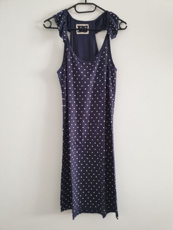 Chemise de nuit bleu marine, à pois blanc, sans manches, volants, tissu léger No excuse, taille 42 Étiquette coupée (peut être viscose et élasthanne) Porté quelques fois Aisselle : 46 cm #pauliiiinefemme42