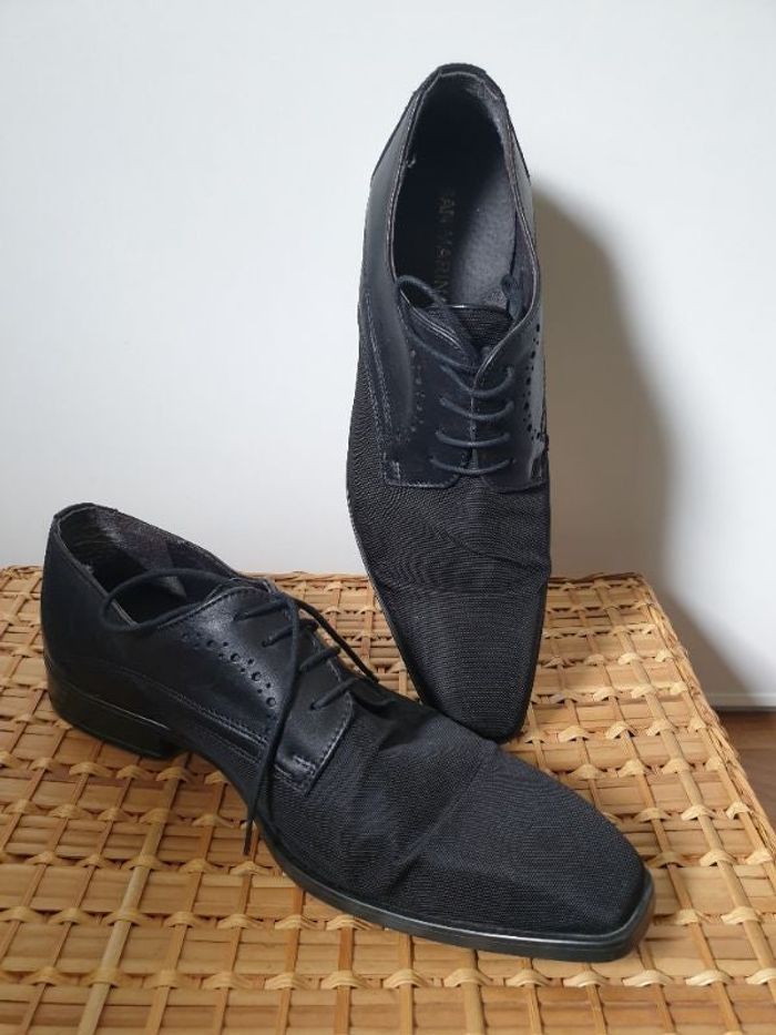 Derby richelieu noire San Marina, taille 42 Dessus et intrrieur en textile et cuir Portées 1 fois pour un mariage #pauliiiinehomme #pauliiiinechaussures