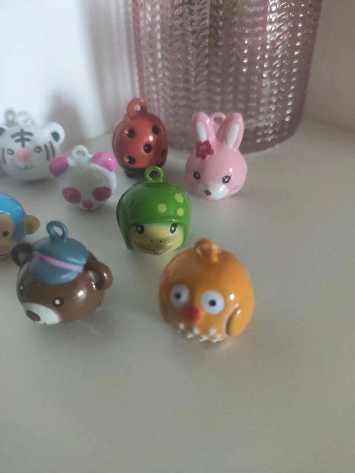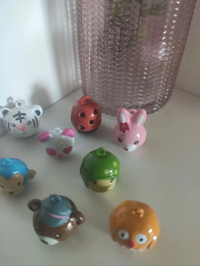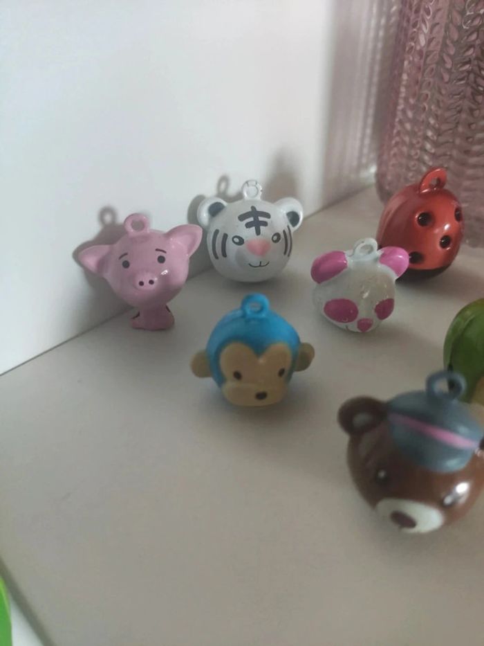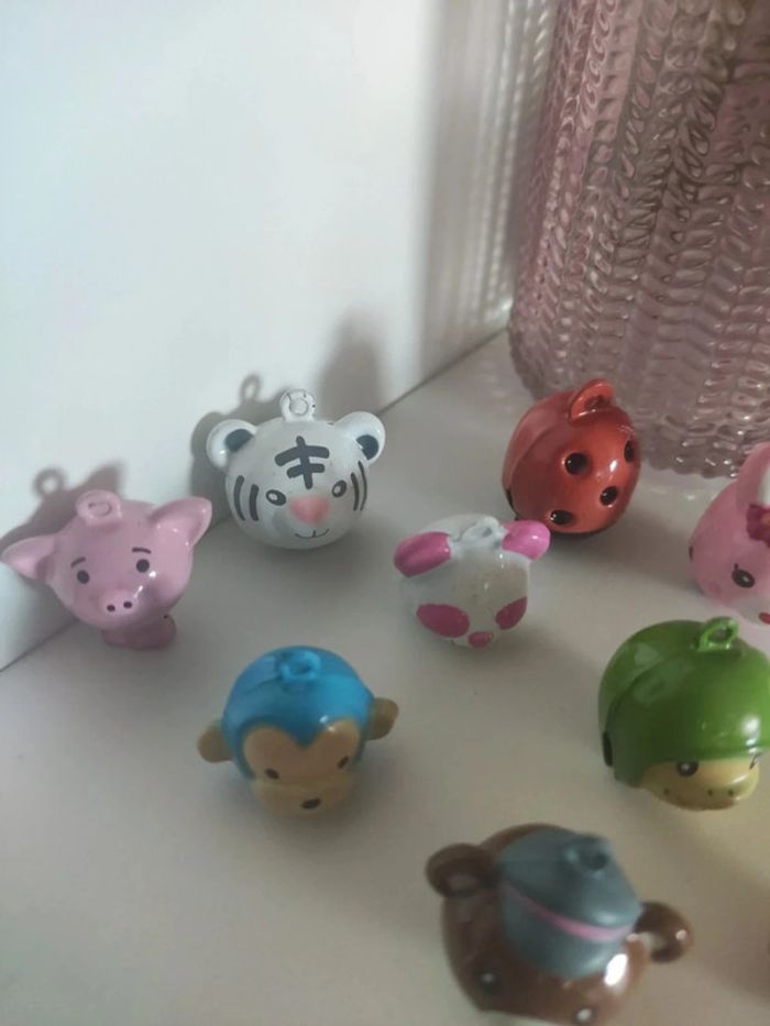 9 grelots clochettes neufs en métal en forme d'animal : cochon, panda, singe, coccinelle, lapin, chouette, ours etc..... Tous peuvent être accrochés. Peut servir de jouet, en décoration, en bijou, au collier d'un chien ou d'un chat.... #vulariBijoux