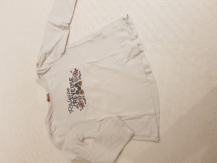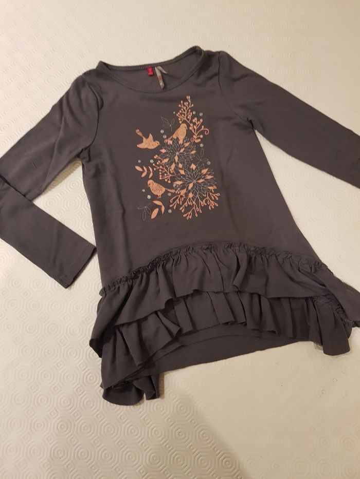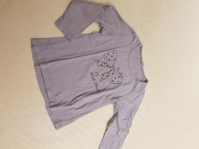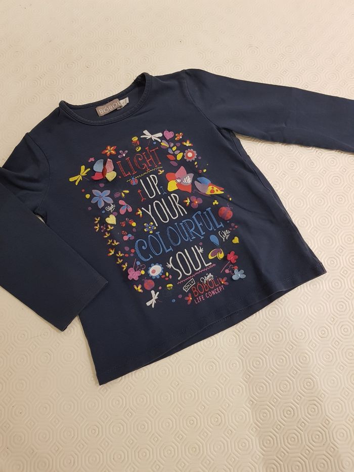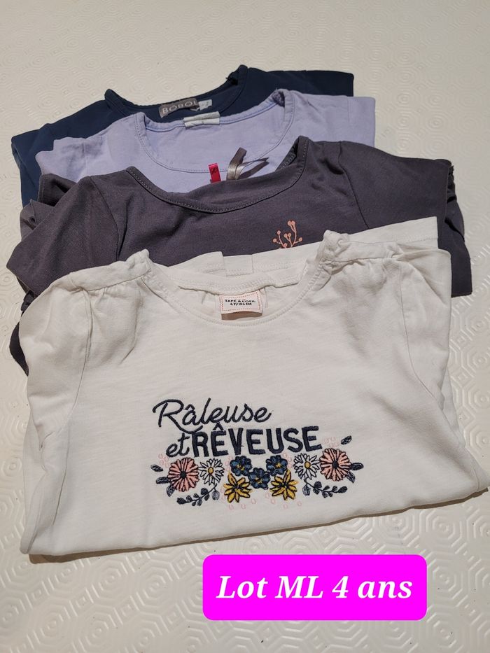 Lot de 4 t-shirts manches longues : - Tshirt manches longues parme avec imprimé noir. Taille : 4 ans. - Tunique manches longues gris foncé avec imprimé rose/orange. Volant sur le bas. ⚠️Quelques légères bouloches⚠️. Marque : Orchestra. Taille : 4 ans. - T-shirt long manches longues blanc avec broderies et imprimés devant. Marque: Tape à l'oeil. Taille : 4 ans. - T-shirt manches longues bleu foncé avec imprimé devant. Marque : Boboli. Taille : 4 ans.